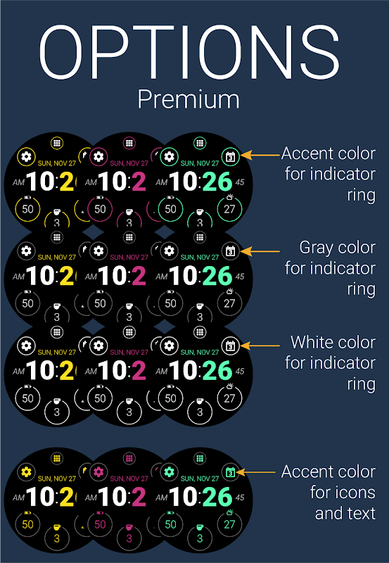 ★ Ability to change selected accent or background color using the Live edit feature using the Watch Face preview