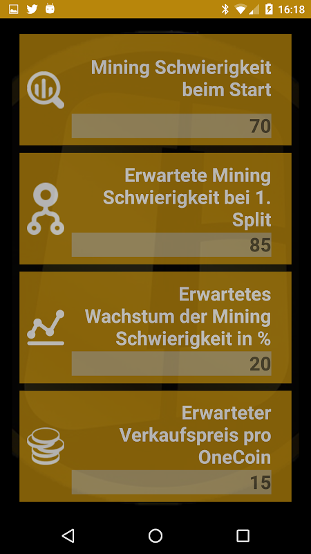 To make this possible, the Mining Calculator mixes the powerful mathematical algorithm of the well-known OneCoin Split calculator with a state of the art & touch based Graphical User Interface.