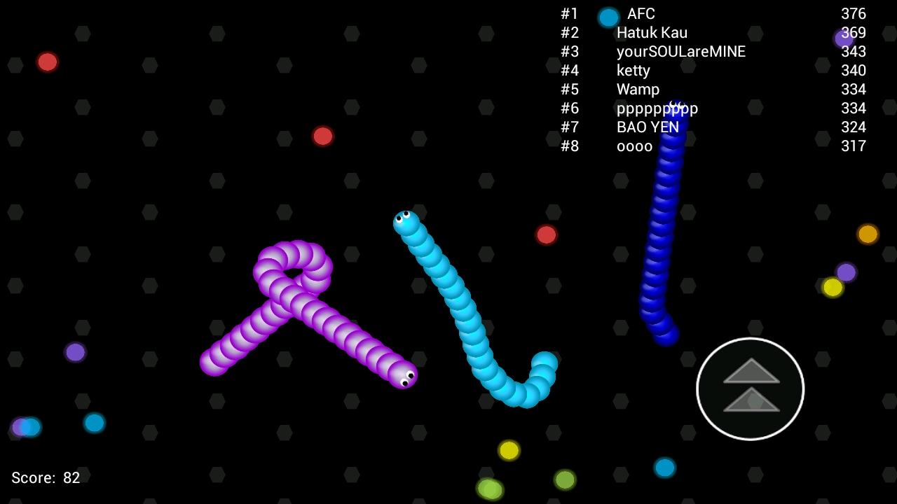 Start the game with a mini snake, slithering around to eat the foods to become the giant and longest snake in this nebulous galaxy. Avoid colliding the wall and other greedy snakes to survive as long as possible. Swap and drag anywhere in the gameplay screen to control your snake slithering and there's a button to boost your movement.