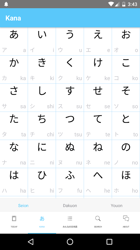 Are you learning Japanese and looking for something more than flashcards? Congratulations! You have hit the jackpot. Minna no Nihongo comprises the 50 sounds charts, vocabularies, listening tests, multiple choice questions, translation exercises (i.e. hiragana to katagana, katagana to romaji, romaji to kanji and the like). It takes you 10 minutes or more everyday to improve your Japanese. It is designed for both beginners and intermediate learners of Japanese. Minna no Nihongo contains reading, writing and listening tests, it is the perfect app which has everything you need.