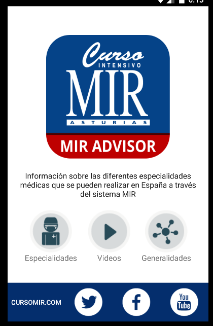 Esta aplicación, desarrollada por Curso MIR Asturias, está destinada a ayudar a médicos y estudiantes de Medicina. En ella encontrarás información sobre las diferentes especialidades médicas que se pueden realizar en España a través del sistema MIR. La información incluye el número de plazas ofertadas en cada convocatoria, los números de orden con la que se han escogido las distintas especialidades y plazas en convocatorias anteriores, el perfil de especialista, los programas de formación de cada especialidad, videos con las opiniones de distintos especialistas, etc.