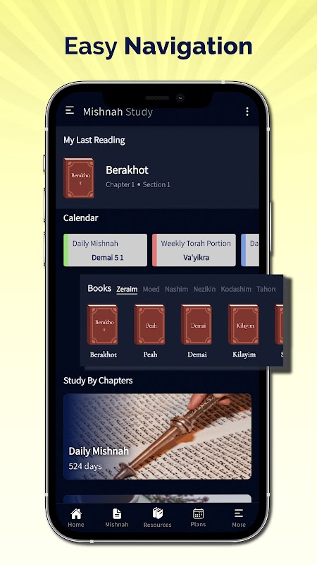 The Mishnah Study app features online Mishna Sdura & Mishnayot in Hebrew & English with Bartenura and more interpretations for each tractates. Offered free to download as public service with all Jewish Sedarim.