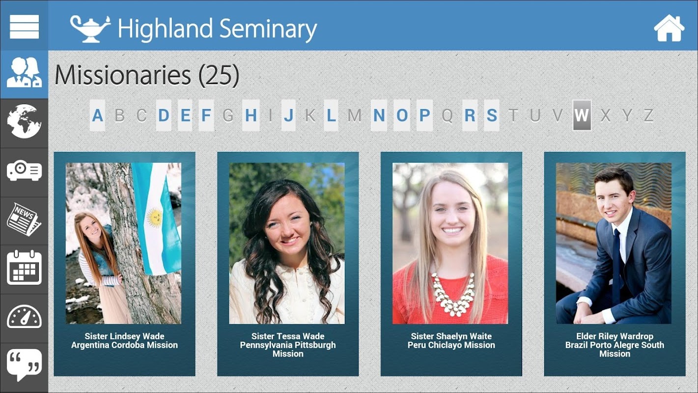 The "Missionary Display" is an interactive app that organizes and presents the digital pictures, maps, stories, and experiences of LDS missionaries serving around the world and highlights their missionary service.