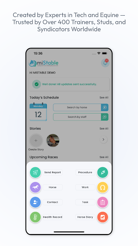 Then pair your owners to you via the miStable Owners App. An app dedicated to owner needs, providing their horse updates as well as race notifications - the only system to provide an alert 9 minutes before the jump.