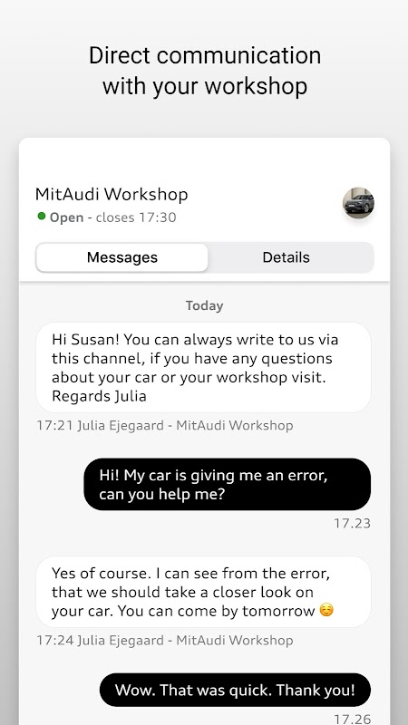 • Direct access to communication with your preferred dealership or workshop