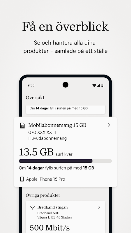Mitt Tele2 is an app for you who are a customer of Tele2 and simply want to keep track of your data consumption, see your invoices and get information about your subscription and hardware.