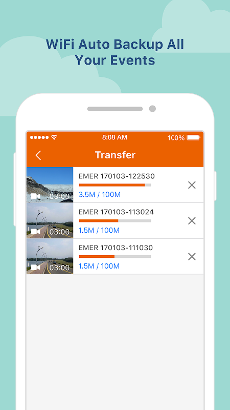 When an incident happens, the dash cam will automatically save the file to the event folder and send footage to the MiVue™ Pro app via WIFI in real-time (WIFI video backup function won’t consume your 3G/4G data, it uses point-to-point transmission technology).