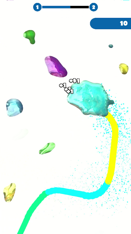 You start small. Absorb others. Become the biggest. Run away from those who are bigger. Mixed colorful drops and have a fun.