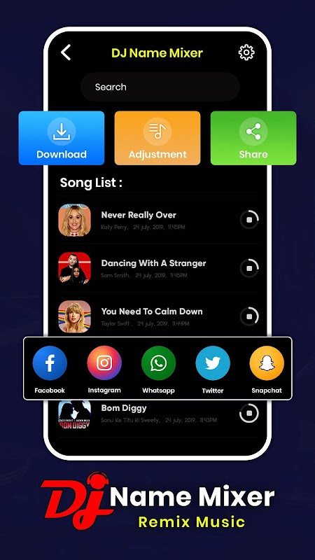 DJ Name Mixer App Is Use to Mix Your Name with All DJ Song.