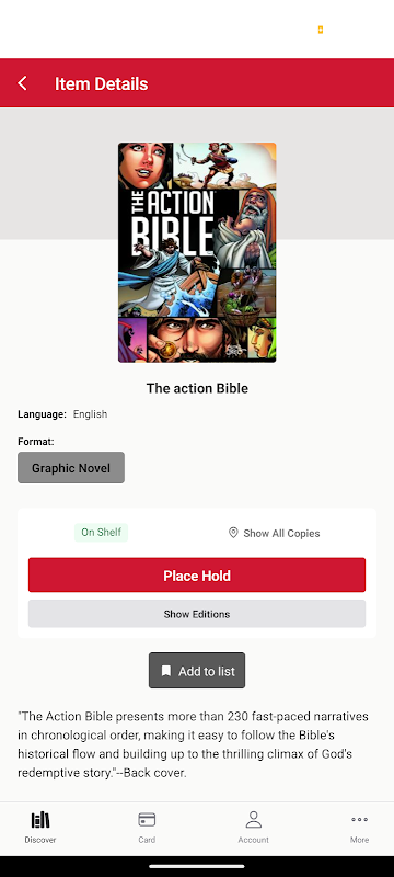 Search books, place holds, renew loans, and access ebooks and eaudio.