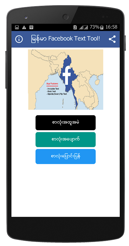 စာလုံးအထူအမဲ၊ အေပ်ာက္၊ ေျပာင္းျပန္ေဇာက္ထိုးလုပ္လို႔ရတဲ့ App