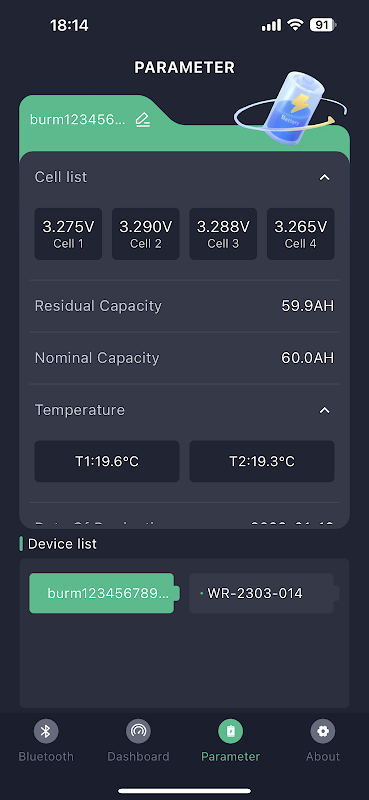 voltage, temperature and balancing data on-the-fly. Oversee individual cell voltages during