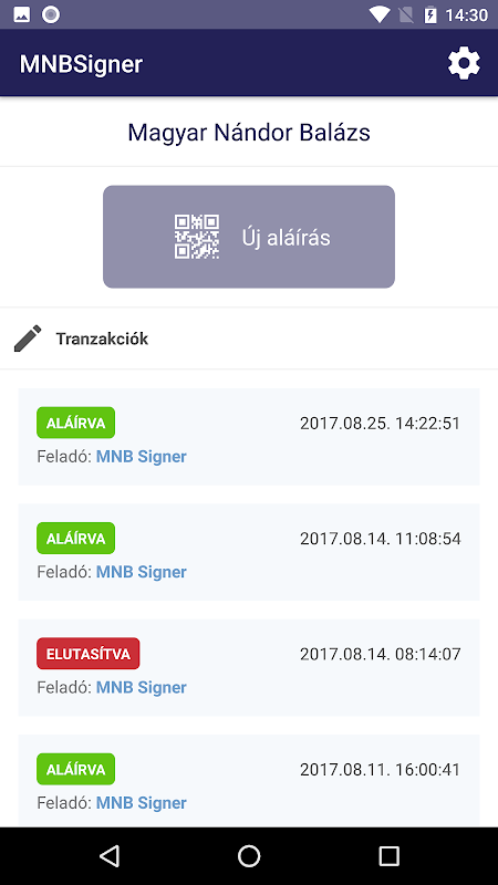 service of the Central Bank of Hungary (MNB), enables users to sign electronic