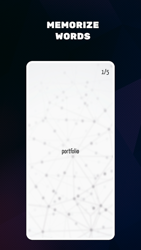 An interesting and useful app for those who like to exercise his brain. The goal is simple - go through the levels, memorizing and remembering words. An entertaining form and motivating notices that affect your conscience, will not let you miss your exercises. The game contains basic memorization techniques. Thanks to them, you will be able to memorize dozens and even hundreds of words. Your memory will be grateful to you if you pass this game.