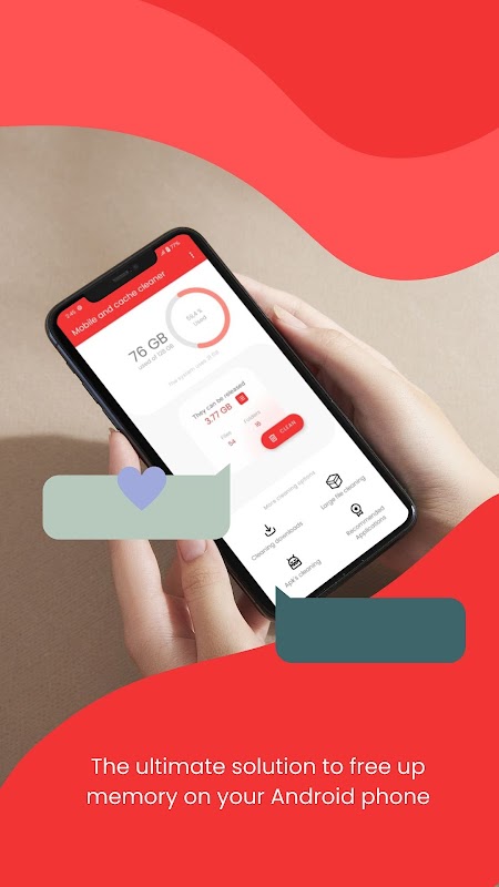 In short, Mobile Cleaner & Cache is the ultimate solution to free up memory on your Android phone. Removes hidden files, temporary and cache files, as well as system files that are created and used only once. In addition, it allows you to review and select files to delete, release large files, and remove uninstalled apps.