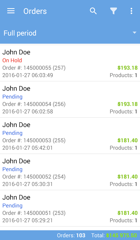 • Ability to filter orders by status, change it right from mobile phone or tablet