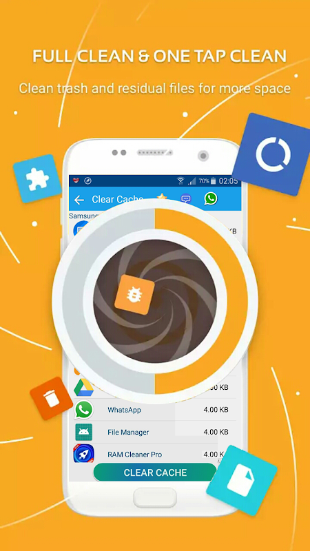 ✓ Delete junk cache files, free up storage space and improve phone performance.
