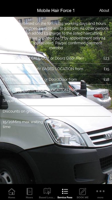 Call out fees will be payable via Paypal on the confirmation of your booked appointment.