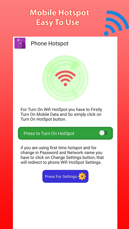 Phone Wifi Hotspot app that turn ON mobile hotspot and share phone data internet with other. Hotspot tethring easy to use wifi hotspot app that make mobile computing easy. In this Wi-Fi Tethering your device act as a wifi hotspot . Simply create your wifi tethering and hotspot and share the internet connection with all devices via wifi hotspot tethering no root required for using this new wifi tethering application.