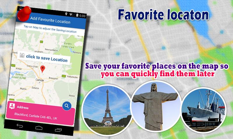 Easily Save favorite locations, so you can easily find route whenever required!