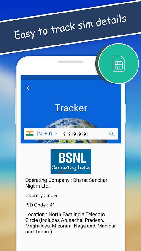 Are you getting calls from unknown number? Do you want to know from where the person is calling? Use Mobile number tracker app to find from which state telecom operator a mobile number belongs to. It shows Caller Location info like Telecom Location Provider, Mobile Number and SIM Location Tracker helps you to Search and Track Indian Mobile Number, STD code and ISD code without an Internet connection, it will display the location of a caller with service providers name, City, State information. You can also view the details of call history of each call in the call log menu.
