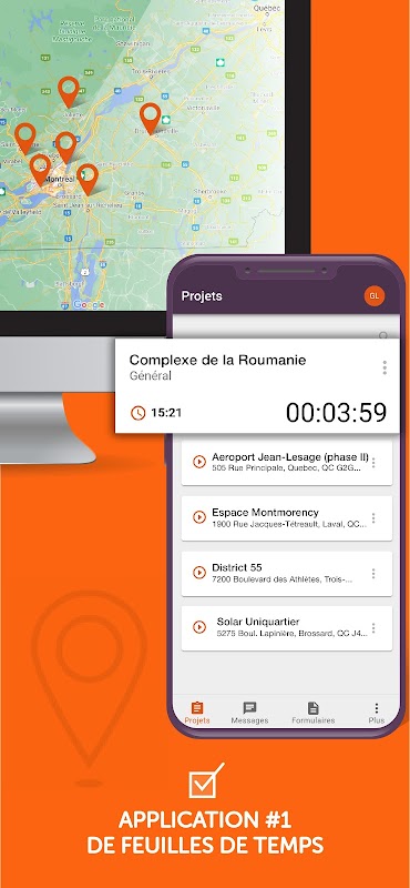 One-Tap Clock In/Out: Employees can easily punch in, punch out, and log travel time to the appropriate project with a single tap.