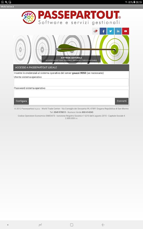 L'App funziona solo in presenza di server Passepartout Mexal o Passcom aggiornati all'ultima versione disponibile