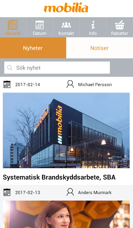Intern applikation för alla butikschefer och anställda som arbetar och verkar i Mobilia, appen skyddas av lösenord.