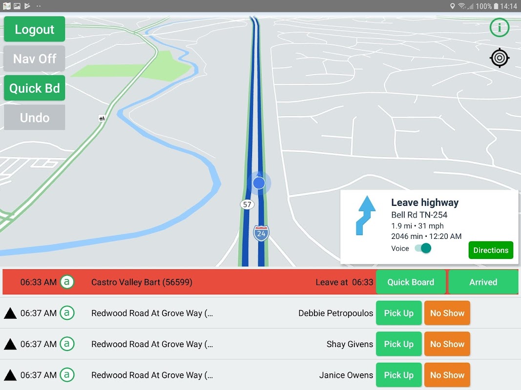 MobilityDR Driver application to provide scheduling and route information for demand responsive drivers.