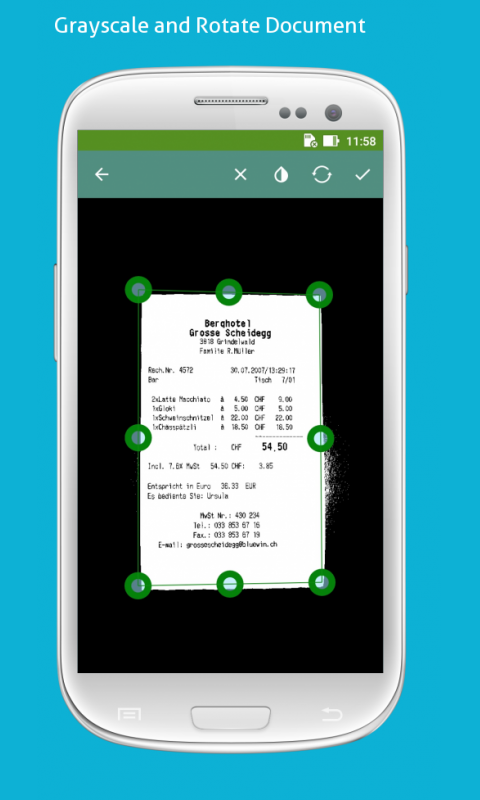 MobScan is a mobile scanner! You can scan lecture notes, documents, certificates, contracts, business cards etc. very fast and easily using your device camera. Scanned docs are saved in a notebook. Whenever you want you can convert it to PDF document.