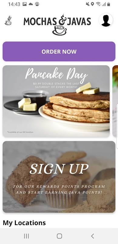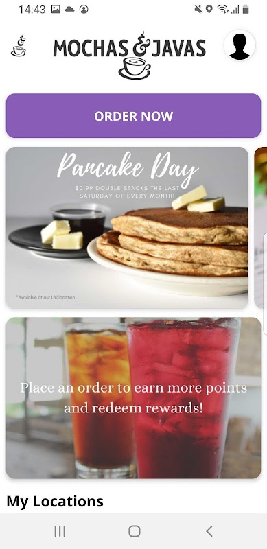 Mochas and Javas, Pepper, Ordering, Takeout, Rewards.