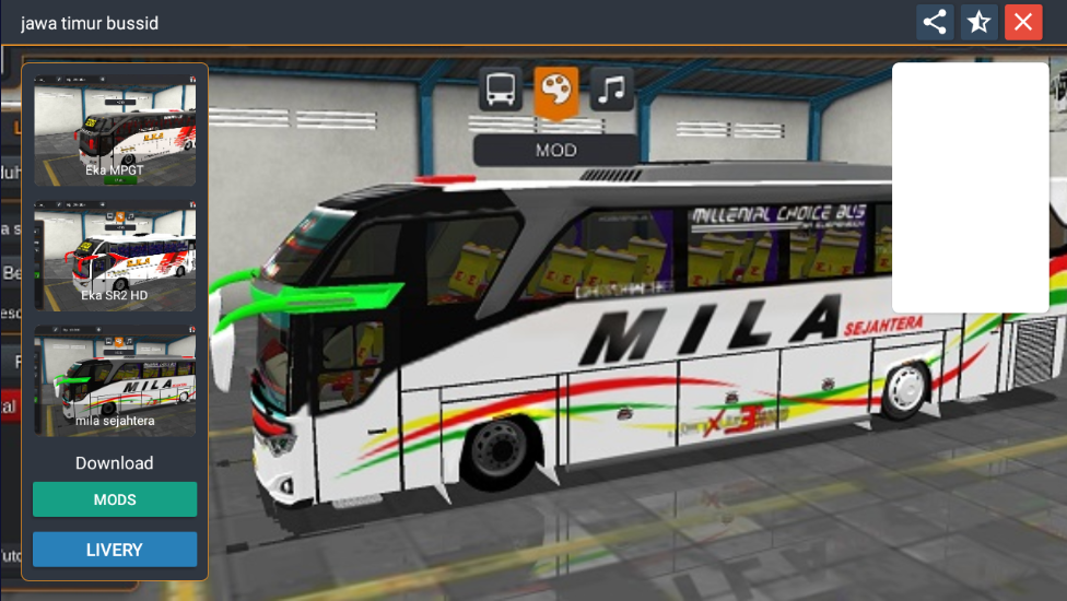 This application provides a collection of 2022 bus simulator mods specifically for East Java buses. If you are wong jowo, you must be very familiar with this bus. There is a bussid sugeng rahayu mod livery which is the most famous on the Jogja-Surabaya route. Then there is the safe source bussid mod which is still one Po. Then the livery mod bussid hopes to be victorious with a very understated appearance. Then there is the fast bussid mod livery with many bus variations. There is also a bussid mira hd livery mod which is no less cool. Then the bussid skipper 99 livery mod with many variants. And don't miss the bussid rosin mod.