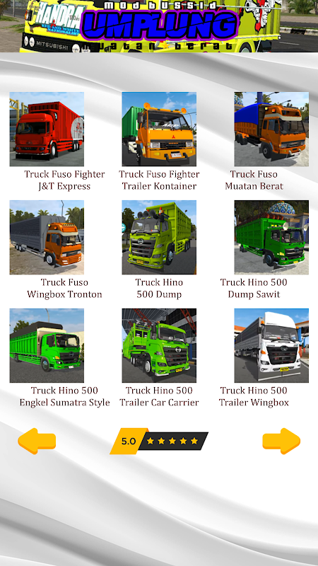 This application contains a very complete collection of umplung bussid trucks. You can get various models of custom umplung mod trucks in this application. Cool models, such as the flat umplung truck mod until it hits the ground, then the famous Cak Slamet umplung truck, then the bussid umplung palm mod collection are all here.