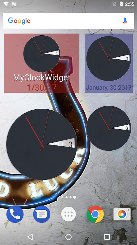 Our Clock Widget App offers you the possibility to choose between three sizes. Small (1x1) - a cute small clock that is the size of an icon, Medium (2x2) - the perfect size for those who want to make their phone the most beautiful and unique, Large (3x3) - the best size for you if you want everyone to notice your phone, Huge (4x4) - the biggest clock ever seen and it is just for your phone.