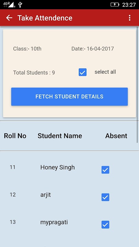 This app will be used by the teachers of Modern Defence Sr. Sec. School. Using this app , teachers can send sms to student's parents. that your student is absent today.