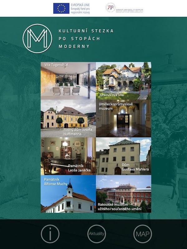 The Traces of Modernity - International cultural and discovery route in the tracks of museum and cultural heritage of southern Moravia and north-eastern Austria of the first half of the 20th century aims to support tourism, spread awareness of the cultural identity of Central Europe and promote meetings among the region’s inhabitants as well as mutual understanding, through the involvement of significant house museums. This is a czech version, english (Modernity) and german (Moderne) find in AppStore.
