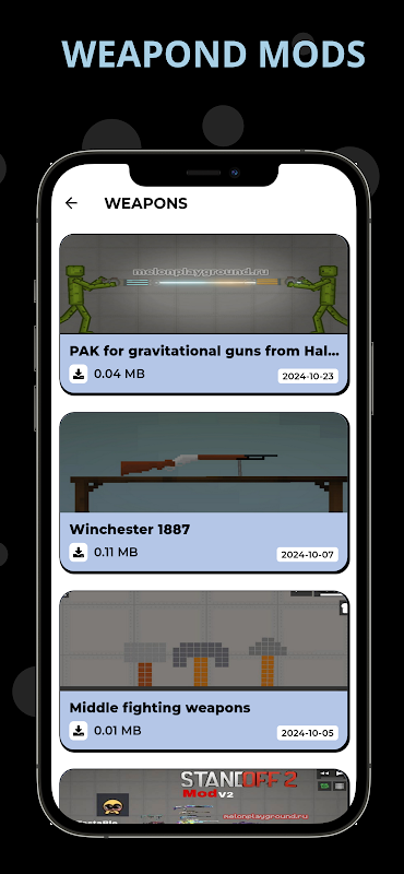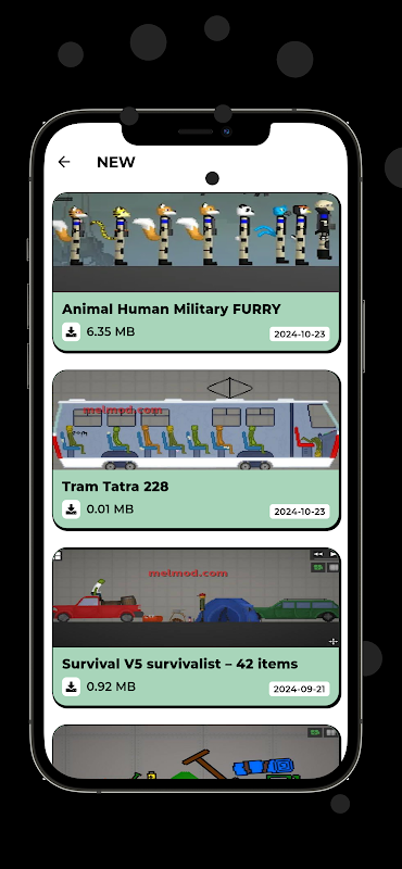 Mods & Addons for Melon PG is your ultimate app for downloading the best mods and addons for Melon Playground. Customize your gameplay with an exciting selection of NEW Mods, NPCs, SAVES, VEHICLES, ITEMS, and WEAPONS to transform your ragdoll sandbox experience!