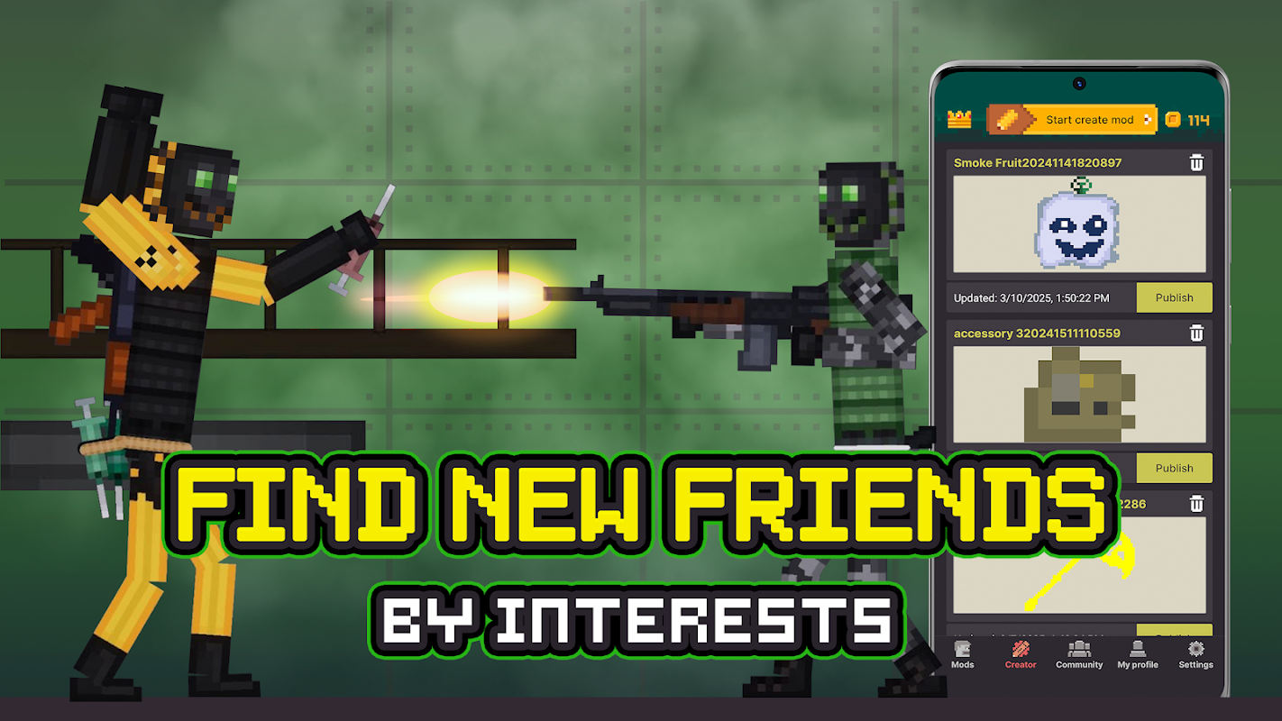 You can create dozens of characters and assign them various actions: from jumping and running to shooting and a given type of weapon. Units interact with each other according to all the rules of physics. This mod gives players the freedom to do whatever they want in this game. The gameplay of Melon Playground is similar to the People Playground game. The game is enjoyed by many players and mod for melon playground is a beautiful addon. You can use any weapon you want to have fun with friends. To export mods directly to the game you must have original game installed on your phone, if not you can download melon mod on your phone memory.
