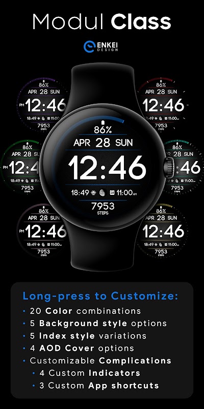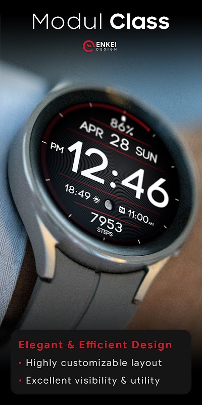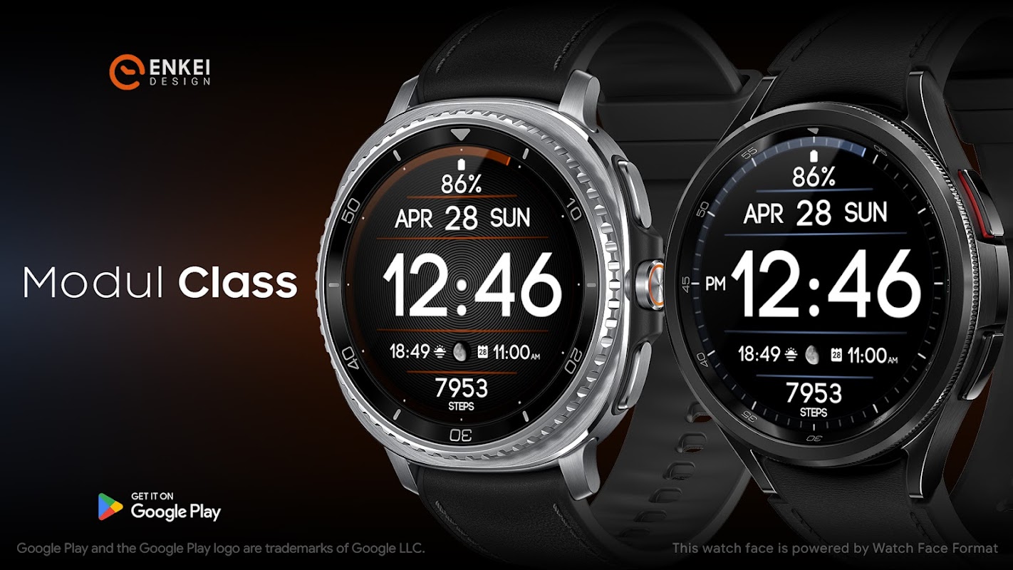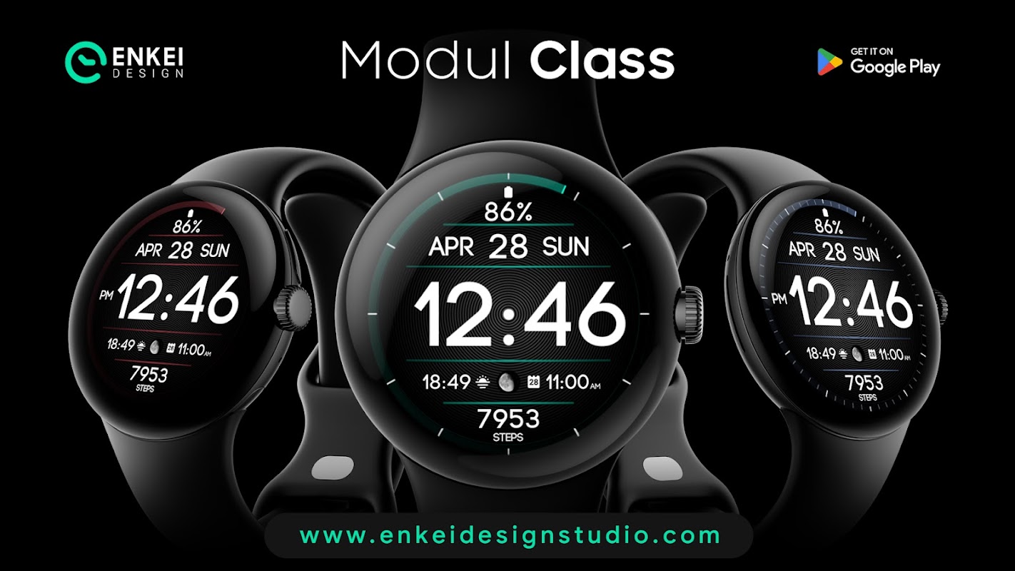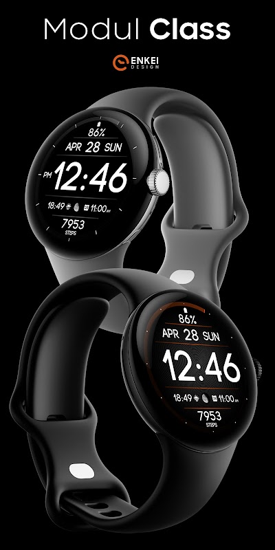Modul Class is a modern digital watch face with an elegant, clean & efficient design that’s focused on visibility.