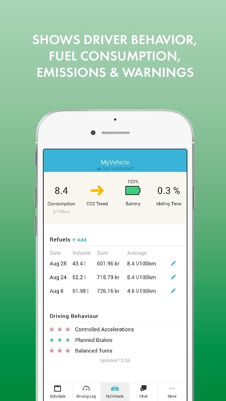 - My vehicle: Here is where all relevant information about vehicle status and driver behavior is gathered, for example fuel consumption, emissions and warnings. You are provided with transparent and relevant data, which can be used to reduce costs and eliminate security risks.