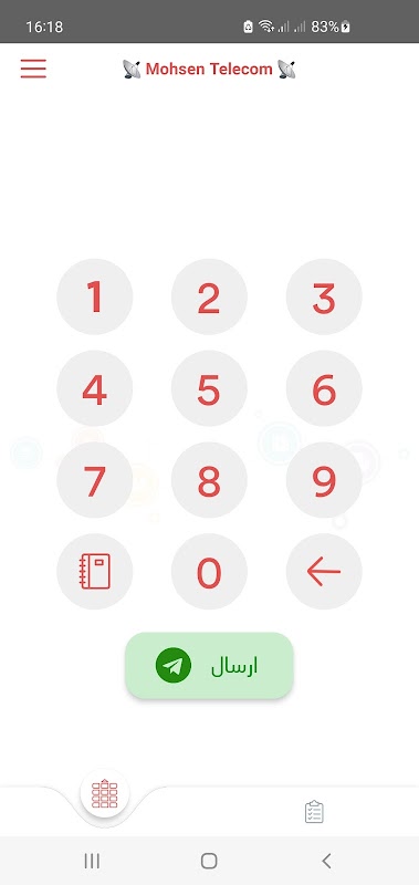 Interface with the customer's phone panel that contains all the settings (regular recharge, Makitvia recharge, invoice)