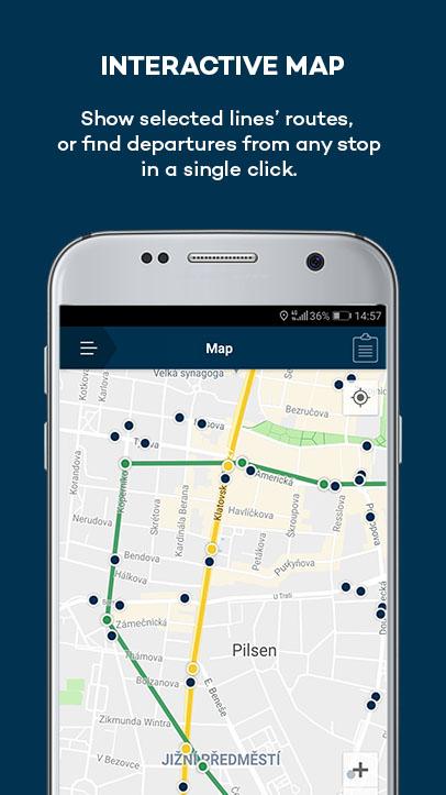 If you don’t ride Pilsen public transportation every day, the interactive map will be of special help. You can see the transport routes for select lines, or choose any stop to see all of the lines that service the stop and click to see their departure times.