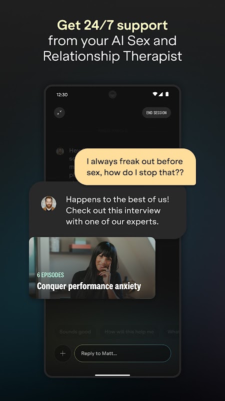 • Support from your AI Sex and Relationship Therapist, available 24/7 to guide you