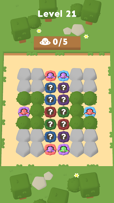 Get ready to dig into Mole Jam, a lively puzzle game where colorful moles and matching burrows turn the board into a bustling underground challenge! Each level places multiple colored holes across a 2D board, each one home to a mole of the same color. When you tap a mole, it pops out of its hole and searches for another empty burrow of its color. If it finds one, it dives in immediately—but if not, it wanders around the board, waiting for a suitable hole to open up.