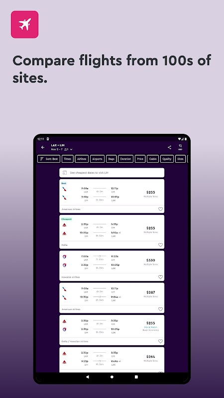 Get the flight you want: Compare flight options from hundreds of sites then zero in on the best one for you by using our filters.