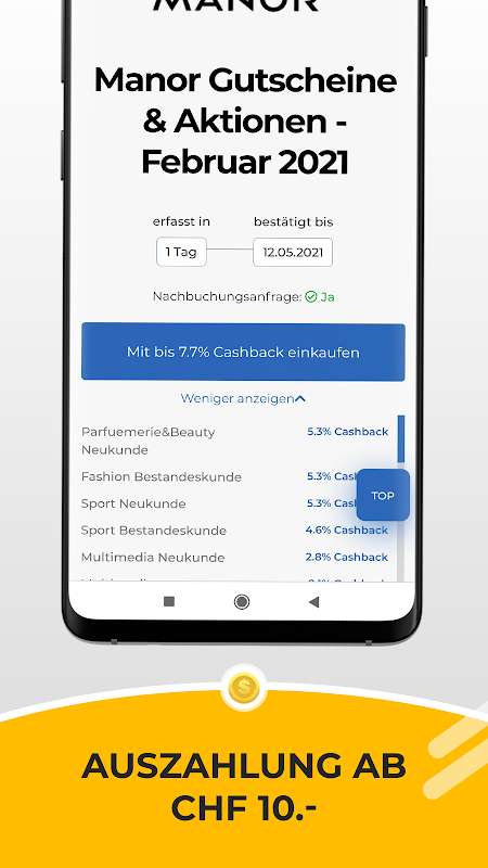 A propos Auszahlung: Diese ist bereits ab einem bestätigten Cashback in Höhe von 10 Franken möglich.