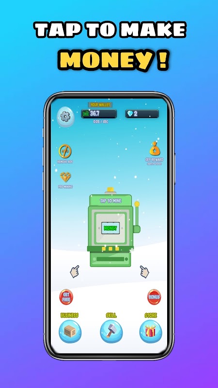 It is a idle money simulation game about making cash. You will earn money in game by taping the machine. Collect all moneys with your finger, just tap and get the money.