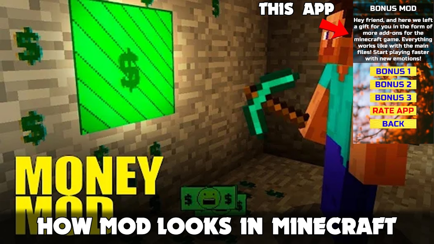 🤩 Money Mod for Minecraft PE 🤩 this is a launcher app that helps you import mods into a game called MCPE!