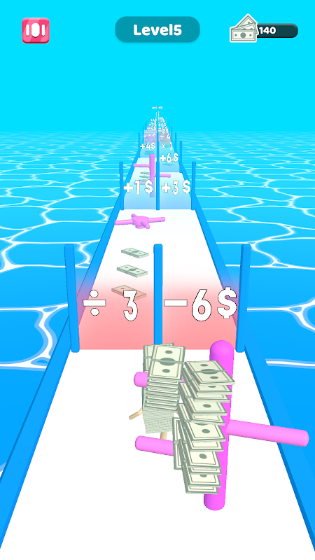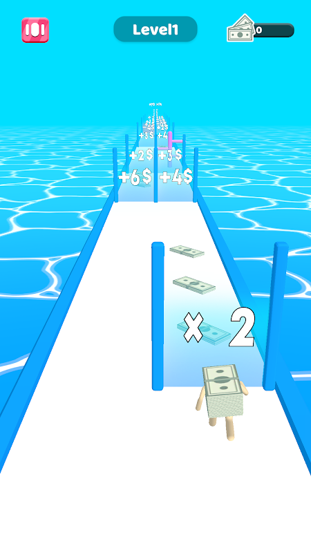 You control a banknote man to run on the road, you can collect the banknotes on the road or multiply them through multipliers, but this may test your mathematical ability.