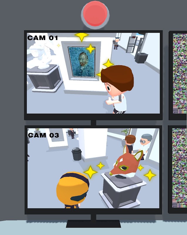 Find the suspects who are trying to steal art, clothes, or money.